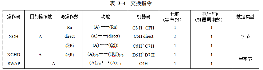 交換指令的功能是交換操作數(shù)的存放位置,指令語法格式見表3-4。