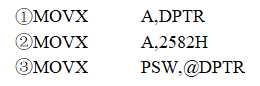 以累加器A為目的操作數(shù)的MOVX指令是輸入指令,將由@DPTR或@Ri所指定的片外RAM單元或I/O端口的8位數(shù)據(jù)送入累加器A。反之,以累加器A為源操作數(shù)的MOVX指令是輸出指令。