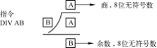 除法指令的格式見表3-7。與乘法指令相似,除法指令的被除數(shù)和除數(shù)均為8位無符號數(shù),被除數(shù)默認放在累加器A中,除數(shù)默認放在寄存器B中。除法的商和余數(shù)均為8位無符號數(shù),分別存于累加器A中和寄存器B中,如圖3-3所示。