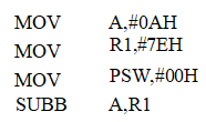 【例3-35】SUBB指令舉例。確定下段程序執(zhí)行后,累加器A和PSW的值。