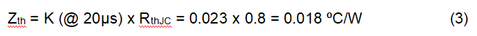 根據(jù)數(shù)據(jù)表,用公式 3計(jì)算tAV為 20μs的熱阻值: