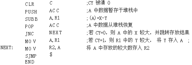 【例3-59】判斷兩個單字節(jié)型無符號數(shù)的大小。要求:單字節(jié)型無符號數(shù)X和Y分別存放于寄存器R0和R1中,比較兩個數(shù)的大小,將其中較大的數(shù)存入R2中。