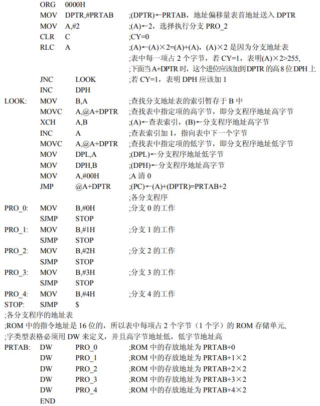 【例3-62】利用分支地址表法,實現(xiàn)與例3-47程序相同的功能。