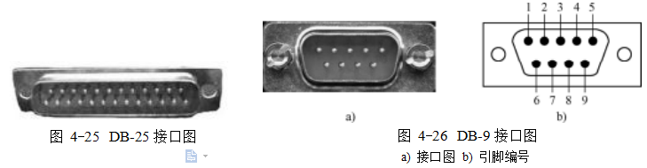 一個(gè)完整的RS-232C接口有22根線,采用標(biāo)準(zhǔn)的25芯DB-25接口(見(jiàn)圖4-25)。目前廣泛采用的是簡(jiǎn)化后的9芯DB-9接口(見(jiàn)圖4-26),其引腳定義見(jiàn)表4-17。而在實(shí)際應(yīng)用時(shí),通常僅使用RXD、TXD和GND引腳。