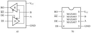 常用的RS-485電平與TTL電平的轉(zhuǎn)換芯片有MAX481/483/485/487等,其內(nèi)部電路及引腳圖如圖4-29所示,其引腳功能見(jiàn)表4-18。