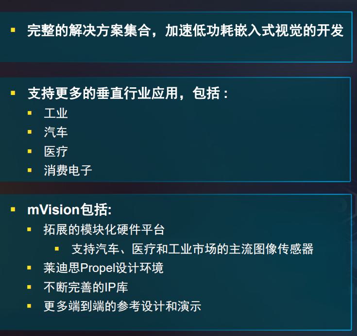 林國松表示,mVision 2.0是當(dāng)前萊迪思推出的最完整的嵌入式視覺解決方案集合,基于新拓展的模塊化硬件平臺、萊迪思Propel設(shè)計環(huán)境、不斷完善的IP庫和更多端到端的參考設(shè)計和演示,mVision將能支持更多的垂直行業(yè)應(yīng)用,包括:工業(yè)、汽車、醫(yī)療和消費電子,軟硬件一體化的開發(fā)環(huán)境進一步優(yōu)化之后,將更有助于加速客戶在低功耗嵌入式視覺領(lǐng)域項目的開發(fā)進度。