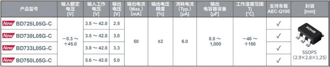 新產(chǎn)品BD7xxL05G-C系列不僅滿足車載產(chǎn)品125℃工作和AEC-Q100汽車電子產(chǎn)品可靠性標(biāo)準(zhǔn)等要求,還滿足車載冗余電源所需的小型封裝尺寸和低耗電量等基本需求。而且,新產(chǎn)品雖然體積小巧,卻可作為一次電源(輸入額定電壓:45V)使用,目前,ROHM正在擴(kuò)展相應(yīng)的產(chǎn)品陣容,以方便客戶可以根據(jù)各種微控制器和傳感器等后級(jí)器件進(jìn)行選用。