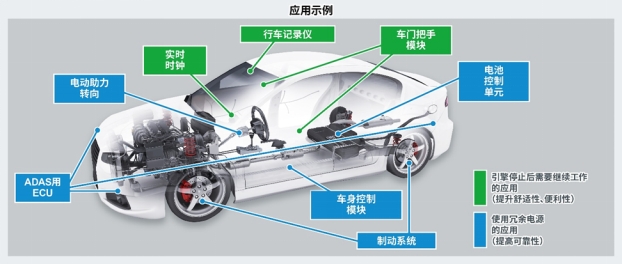 在添加電源時(shí),通過(guò)使用新產(chǎn)品可以實(shí)現(xiàn)低功耗并節(jié)省空間,因此新產(chǎn)品也適用于冗余電源以外的應(yīng)用,例如引擎停止后繼續(xù)工作的電源。