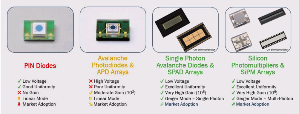 通過對(duì)比可以看到,PIN二極管、APD陣列、SPAD陣列、SiPM陣列還是有很大不同。