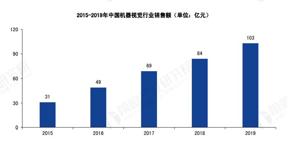 圖:2015-2019年中國機(jī)器視覺行業(yè)銷售額