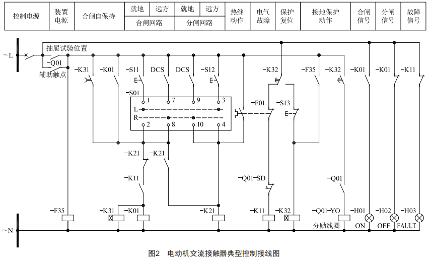 (1)在主動(dòng)力回路正常且保護(hù)未動(dòng)作的條件下,操作人員控制就地按鈕-s11或遠(yuǎn)方控制系統(tǒng)DCs觸發(fā)合閘指令,接觸器線圈_K01得電,主觸頭閉合接通電動(dòng)機(jī)動(dòng)力回路,電動(dòng)機(jī)運(yùn)行。操作人員控制就地按鈕_s12或遠(yuǎn)方控制系統(tǒng)DCs觸發(fā)分閘指令,繼電器_K21得電,輔助觸頭斷開_K01控制回路,電動(dòng)機(jī)動(dòng)力回路失電,電動(dòng)機(jī)停運(yùn)。
