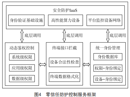 同時(shí),本文提出的零信任防護(hù)服務(wù)也可單獨(dú)抽離,為AMI架構(gòu)中的其他模塊提供服務(wù)。整體服務(wù)總體框架如圖4所示,包括終端接口攔截、動(dòng)態(tài)鑒權(quán)控制、統(tǒng)一身份管理和安全防護(hù)IaaS。