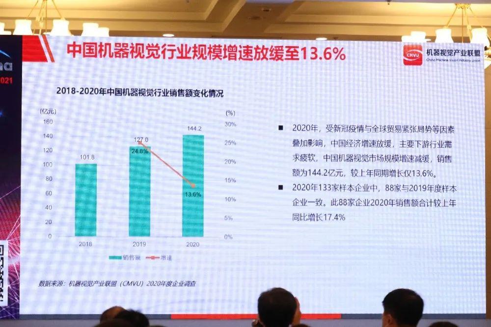 “突如其來的疫情打亂了機器視覺全行業(yè)的發(fā)展步調(diào),加之全球貿(mào)易緊張、地緣政治因素影響,中國機器視覺產(chǎn)業(yè)的發(fā)展速度放緩,下游產(chǎn)業(yè)需求疲軟,進(jìn)而導(dǎo)致機器視覺市場增速減緩。”潘津表示,根據(jù)機器視覺產(chǎn)業(yè)聯(lián)盟2020年度企業(yè)調(diào)查數(shù)據(jù),2020年中國機器視覺銷售額為144.2億元,同比增長13.6%,毛利率同比增長8.8%。