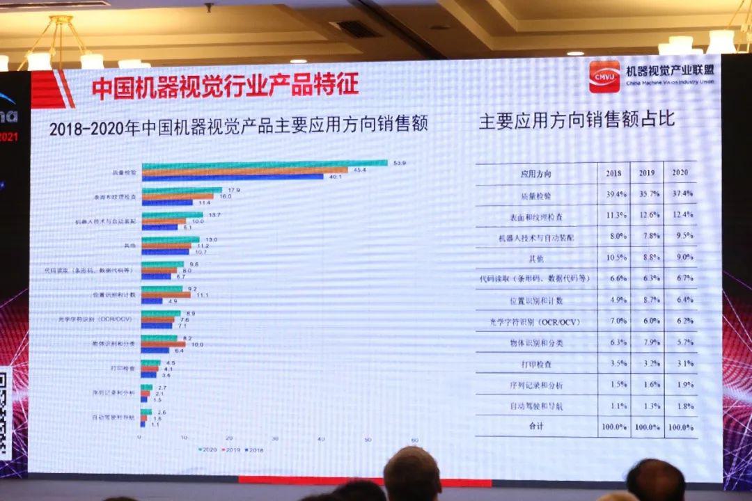 潘津表示,回到機器視覺產(chǎn)品應(yīng)用,其主要應(yīng)用涵蓋了質(zhì)量檢測、機器人技術(shù)與自動裝配、代碼讀取、位置識別和計數(shù)、字符識別、物體識別與分類、打印檢查、序列記錄和分析,以及自動駕駛和導(dǎo)航等。其中,從2018年至2020年的數(shù)據(jù)來看,機器視覺在質(zhì)量檢測上的應(yīng)用占比連續(xù)三年位居首位。2020年,機器視覺質(zhì)量檢測應(yīng)用占比約37.4%,復(fù)合增長率為15.8%。