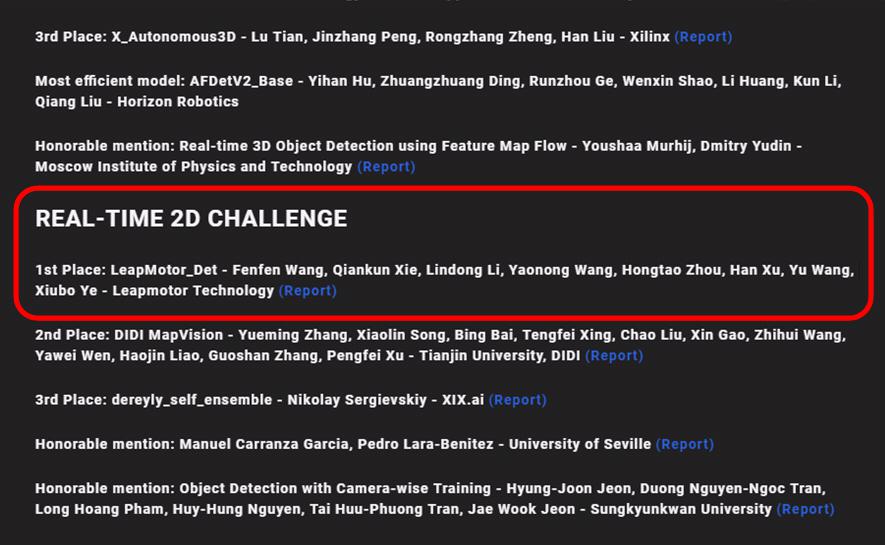 在實時2D挑戰(zhàn)項目中,中國的零跑汽車團(tuán)隊在2D實時檢測挑戰(zhàn)賽中斬獲了第一名。