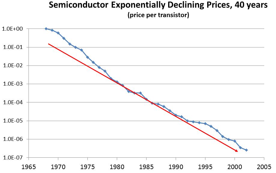半導(dǎo)體產(chǎn)業(yè)規(guī)模的擴(kuò)張,從來不是靠漲價(jià),而是遵循摩爾定律路徑,拼命研發(fā)新一代產(chǎn)品,通過降低芯片價(jià)格和整機(jī)價(jià)格(集成度提高,意味著整機(jī)廠物料成本下降),讓更多電子產(chǎn)品從小眾市場邁向大眾市場,讓更多人享受到科技帶來便利與樂趣。