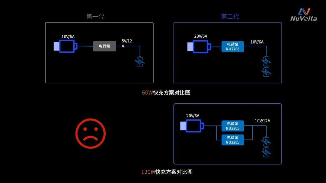 更重要的是,NU2205可支持多芯片并聯(lián),兩顆并聯(lián)可實現(xiàn)120W充電功率;三顆并聯(lián),充電功率將突破200W,這種技術(shù)是單電芯方案無法比擬的。