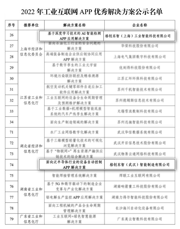 1月13日,工信部發(fā)布《2022年工業(yè)互聯(lián)網(wǎng)APP優(yōu)秀解決方案名單公示》,由格創(chuàng)東智研發(fā)的 “基于深度學(xué)習(xí)技術(shù)的 AI智能檢測(天樞AI)APP 應(yīng)用解決方案”、“面向泛半導(dǎo)體行業(yè)的設(shè)備自動控制(EAP)APP解決方案”入選。這是繼“MFA多因子分析APP應(yīng)用解決方案”、“基于工業(yè)互聯(lián)網(wǎng)的設(shè)備健康管理(EHM)APP 解決方案”之后,格創(chuàng)東智自研產(chǎn)品再度入選工業(yè)互聯(lián)網(wǎng)領(lǐng)域最權(quán)威認證名單。