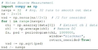 圖20.ADALM2000的Python噪聲源測(cè)量代碼
