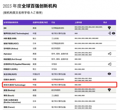 BOE(京東方)入選科睿唯安“2023年度全球百強創(chuàng)新機構(gòu)” 卓越創(chuàng)新引領(lǐng)高質(zhì)量發(fā)展
