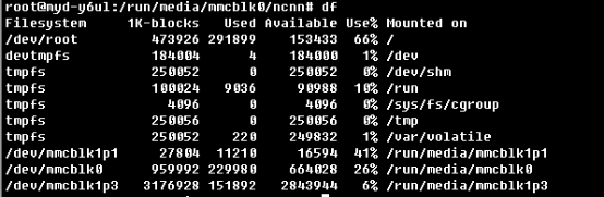 經(jīng)過觀察板上的文件系統(tǒng),發(fā)現(xiàn)有3.1G的空間沒有使用,此時可以使用fdisk 來格式化該空間,格式化成 ext4 格式,重啟板子后,就可以看到這部分空間了,然后把ncnn的所有測試執(zhí)行文件和資源文件傳到該目錄下,這樣就夠用了。