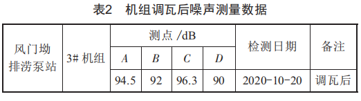 風(fēng)門坳排澇泵站機(jī)組雖為半調(diào)結(jié)構(gòu),但葉片安放角度可能存在些許偏差,對(duì)比各機(jī)組的運(yùn)行情況,3#水泵的葉輪角度可能對(duì)機(jī)組運(yùn)行有不利影響,機(jī)組運(yùn)行噪聲也相對(duì)較大,環(huán)境變化時(shí)機(jī)組噪聲幅值變化也更為明顯。