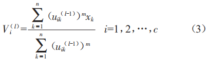 (4)當(dāng)給定的隸屬度終止容限8>0,滿(mǎn)足條件時(shí),停止迭代,否則l=l+1,繼續(xù)進(jìn)行第二步。