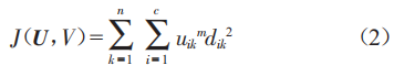 其中,U=(uik)c×n為隸屬度矩陣,dik=||xk-pi||。FCM得到U、V的值使得J(U,V)取得最小值。