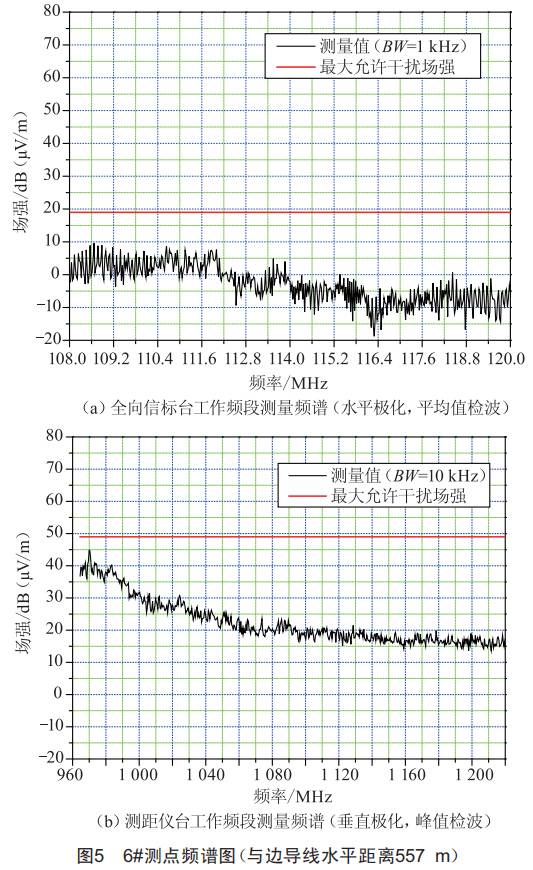 根據(jù)前述文獻的要求,線路干擾測量結(jié)果表明,線路對導(dǎo)航臺的干擾值均在限值要求以內(nèi)。