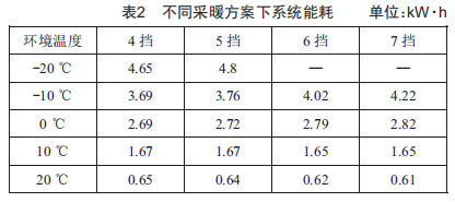不同方案下單次通勤能耗結(jié)果如表2所示??紤]到風(fēng)量低于4擋乘員熱舒適性較差,故放棄1~3擋風(fēng)量的采暖方案。從表2可以看出,風(fēng)量不僅對采暖速率有影響,對采暖能耗也有一定的影響,因此在制訂空調(diào)系統(tǒng)控制策略時要考慮風(fēng)量帶來的影響。
