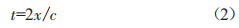 激光雷達(dá)基于飛行時間(TimeofF1ight,ToF)原理進(jìn)行距離檢測,通過對激光脈沖反射時間的高精度測量,獲取準(zhǔn)確的位置信息,同時結(jié)合電機(jī)旋轉(zhuǎn)運(yùn)動實(shí)現(xiàn)環(huán)境掃描構(gòu)圖。脈沖測距的基本原理如圖2所示,高精度計(jì)時器通過測量發(fā)送激光和接收激光之間的時間差計(jì)算被測目標(biāo)與傳感器之間的距離,測量距離的表示如下: