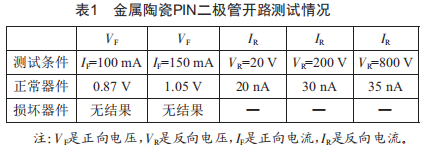 (1)金屬陶瓷封裝PIN二極管在工程應(yīng)用中出現(xiàn)的失效現(xiàn)象本質(zhì)是PIN二極管內(nèi)部PIN結(jié)開路或短路: