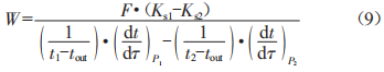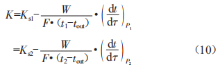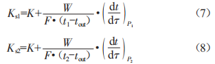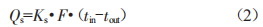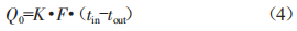 中:Qs為輸入車內(nèi)的恒定加熱功率(w):Ks為升溫階段的車輛瞬時(shí)K值[w/(m2·K)]:F為車體隔熱壁的外表面面積或幾何平均面積(m2):1in為車內(nèi)平均溫度(℃):1out為車外平均溫度(℃)。