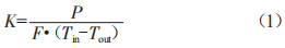 式中:P為在熱穩(wěn)定狀態(tài)下輸入車內(nèi)的加熱功率(w):F為車體隔熱壁的外表面面積或幾何平均面積(m2):Tin為車內(nèi)平均溫度(℃):Tout為車外平均溫度(℃)。