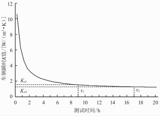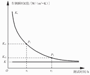 采用升溫法測試車輛K值,僅需記錄車內(nèi)平均溫度的升溫?cái)?shù)據(jù),無須等待車輛內(nèi)部和外部環(huán)境達(dá)到熱平衡的穩(wěn)定狀態(tài),即可計(jì)算得到車輛K值。