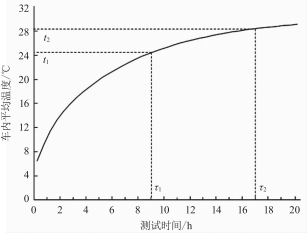 圖1熱穩(wěn)定法車內(nèi)平均溫度隨時(shí)間的變化曲線