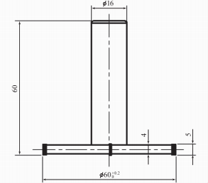 翼面定位槽的加工,槽深21.1mm,槽長280mm,槽寬(6+0.075)mm,該槽用于翼面與鈦合金結(jié)構(gòu)件艙體的裝配定位,須保證槽底尺寸R30。為了滿足加工要求,自制的帶柄硬質(zhì)合金三面刃銑刀如圖3所示,刀柄直徑16mm,銑刀直徑(60+0.2)mm,厚度5mm,刀頭的材料選擇YG類,銑刀前角y=3°,后角a=8°,刀尖圓弧半徑為0.5mm,最終滿足了尺寸R30的精度要求。