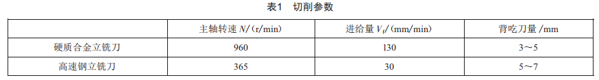 為提高整個夾具系統(tǒng)剛度,減小刀具的懸伸距離,以避免切削過程易產(chǎn)生的振動現(xiàn)象,最終工藝參數(shù)如表1所示。