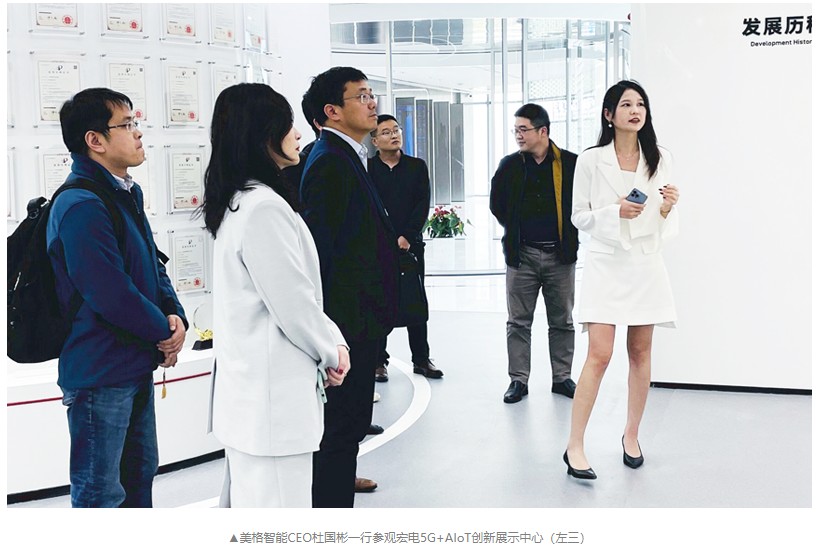 美格智能杜總一行參觀了宏電總部大廈與宏電5G+AIoT創(chuàng)新展示中心和可靠性驗證實驗室,過程中充分展示了宏電股份的發(fā)展歷程、產(chǎn)品技術(shù)創(chuàng)新、業(yè)務(wù)布局及發(fā)展戰(zhàn)略,杜總一行對宏電股份的新產(chǎn)品、新應(yīng)用有了進一步的了解,相信未來宏電股份將在5G+AIoT領(lǐng)域更上一層樓。
