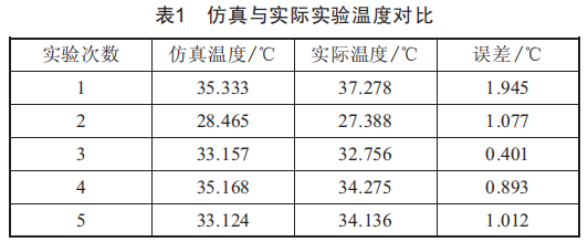 熱電偶對電纜接頭溫度測試采用多次測量的方式,對比仿真實驗測得的溫度與實際實驗溫度,整理如表1所示。