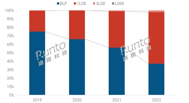 與手機(jī)、電腦等產(chǎn)業(yè)一樣,投影市場中的國貨同樣經(jīng)歷了十分漫長的“黑暗時(shí)代”?;乜粗悄芡队霸谥袊陌l(fā)展歷程,以海外芯片為核心的DLP技術(shù)投影儀占據(jù)著大部分的市場份額。但面對(duì)海外芯片的技術(shù)圍剿,最先出現(xiàn)轉(zhuǎn)機(jī)的卻也是國內(nèi)智能投影市場。