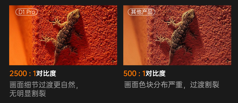 在京東方定制顯像屏的基礎(chǔ)上,微果D1 Pro選用的是原生真1080P物理分辨率的顯示屏,它的實(shí)際分辨率為1920*1080,像素更是高達(dá)207萬。