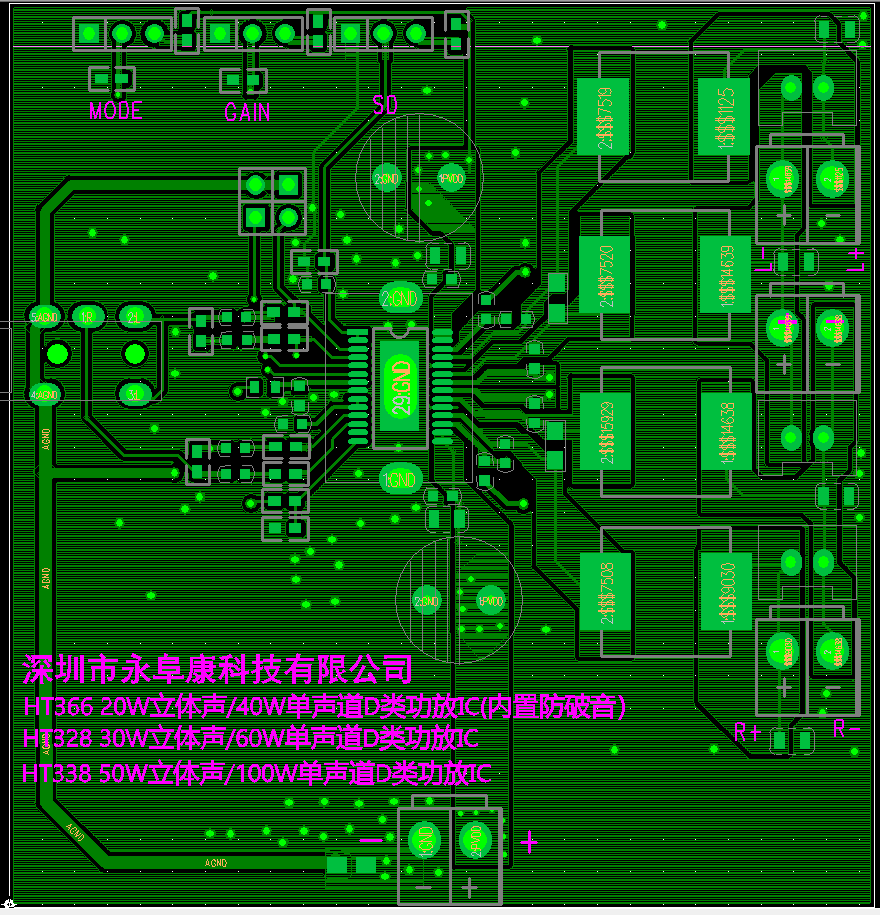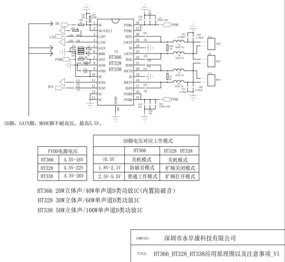 HT366/HT328/HT338最新20W、30W、50W雙聲道D類功放IC系列