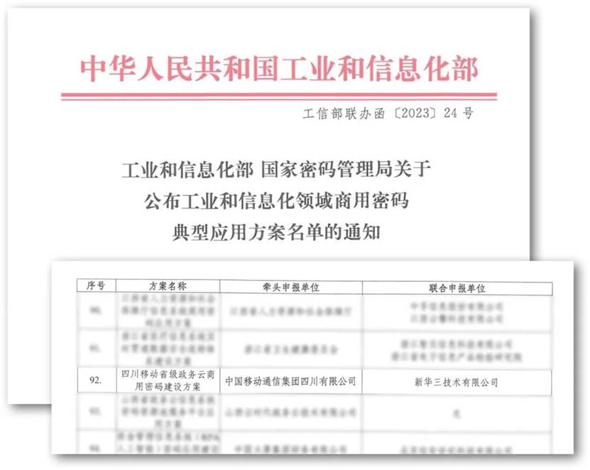 新華三聯(lián)合四川移動打造政務(wù)云商密方案,入選工信領(lǐng)域商密典型方案名單