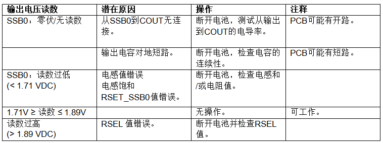 使用下表診斷和解決相關(guān)SSB1 (1.8VDC)輸出問題: