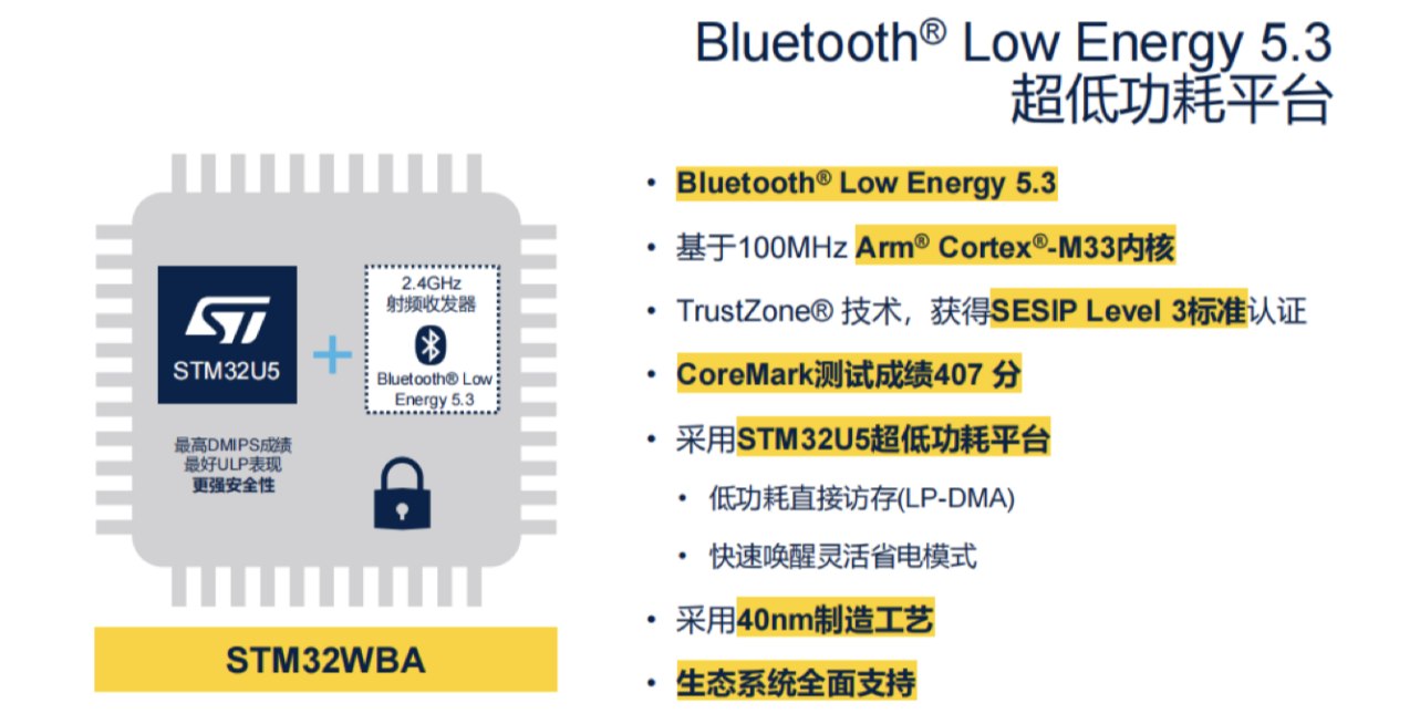 STM32WBA是其無線MCU產(chǎn)品家族的新成員,主要針對超低功耗的短距離無線傳輸場景,支持 802.15.4 的 Ble5.3、Zigbee、Thread 以及基于 Thread 的 matter 產(chǎn)品。