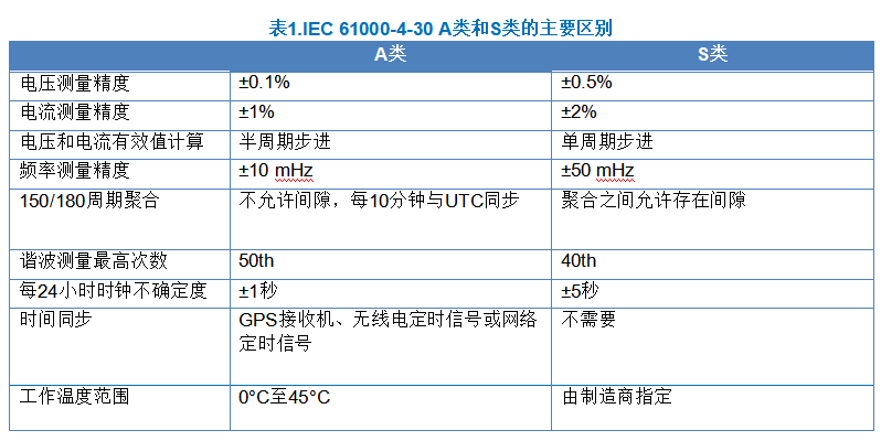 IEC 61000-4-30標(biāo)準(zhǔn)定義的A類和S類的主要區(qū)別