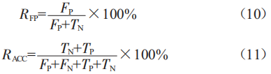 采用命中率(RTP)、假警率(RFP)和準(zhǔn)確率(RACC)作初步評(píng)估: