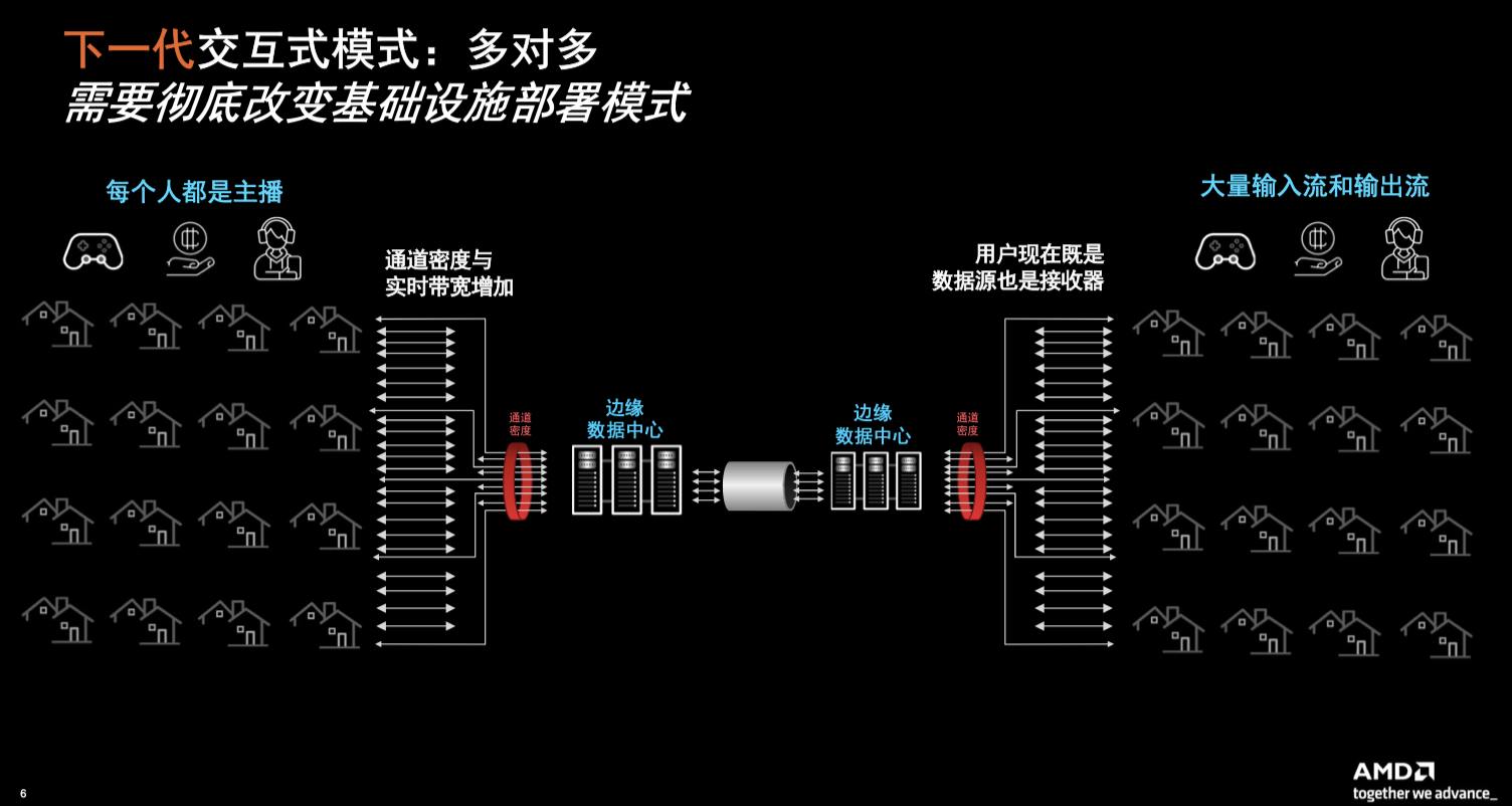 視頻流媒體市場(chǎng)總額將從2021年的61個(gè)Billion一路增長,至2028年達(dá)到213個(gè)Billion。流媒體大漲的背后技術(shù)挑戰(zhàn)來自新一代的交互模型,會(huì)是“多對(duì)多”的形式。這種交互模型的變化,將會(huì)徹底改變基礎(chǔ)設(shè)施的部署模式。