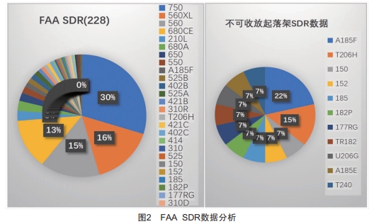 通過查詢美國聯(lián)邦航空局(Federa1AviationAdministration,簡稱FAA)航空器使用困難報(bào)告數(shù)據(jù)庫(ServiceDifficu1tyReport,簡稱SDR),收集到228條與Cessna飛機(jī)起落架系統(tǒng)有關(guān)的SDR報(bào)告,SDR故障報(bào)告日期在1995年5月至2022年7月,其中214條與可收放起落架有關(guān),14條與不可收放起落架有關(guān),數(shù)據(jù)分析如圖2所示。進(jìn)一步分析11個(gè)機(jī)型出現(xiàn)的多條不可收放起落架出現(xiàn)的故障數(shù)據(jù)發(fā)現(xiàn):4起為前起落架故障:1起為主起落架上的浮筒故障:7起主起落架故障中,有5起為主起落架與機(jī)身處的連接螺栓松動或安裝襯套損傷(其中4起明確發(fā)生在右主起落架),1起為主起落架輪軸缺乏潤滑,1起為重著陸導(dǎo)致主起落架折斷,沒有Cessna172飛機(jī)起落架的故障信息。基于美國通航業(yè)高度發(fā)達(dá)、輕型飛機(jī)飛行小時(shí)數(shù)達(dá)近百萬小時(shí)來折算,Cessna飛機(jī)裝用的兩種一體式不可收放起落架可靠性較高。